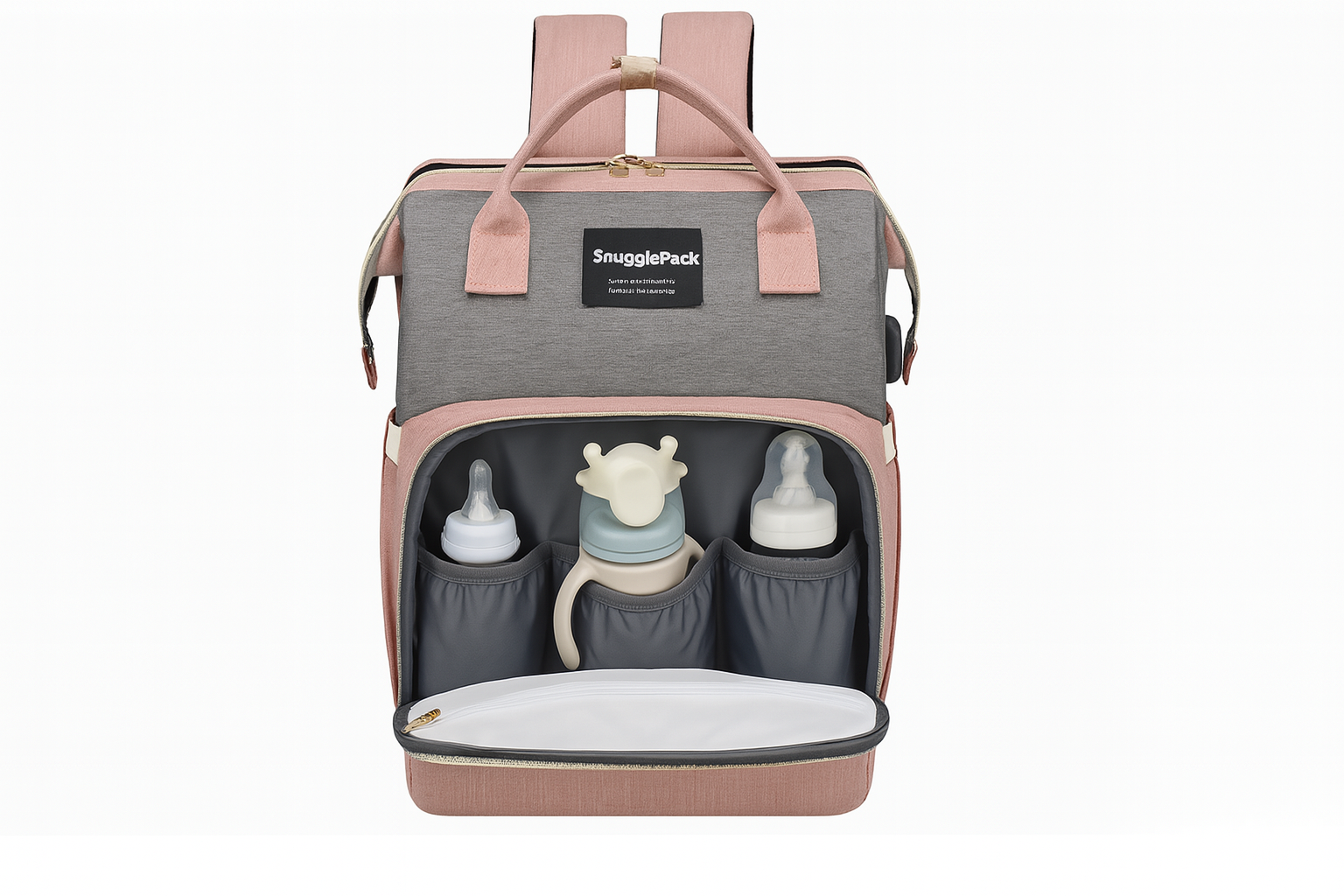 Möt SnugglePack™, den banbrytande, utdragbara skötväskan som gör föräldraskap enklare – var du än är, när som helst. Med sin innovativa inbyggda skötstation, rymliga fack och ergonomiska design ser denna allt-i-ett-väska till att du alltid är redo.