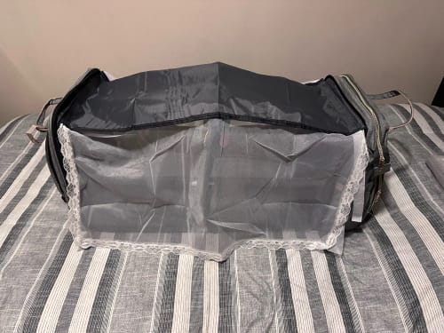 SnugglePack förvandlas enkelt till en vaggliknande skötstation med sidonät för säkerhet. Öppna bara dragkedjan baktill, fäll ut ramen och lägg ut den vadderade madrassen för en trygg och bekväm plats att byta eller vila din bebis på.